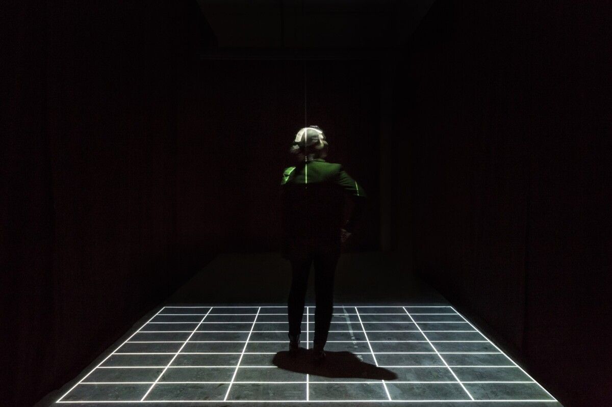 A variety of Formpark parquet designs are projected on the floor of the darkened entrance area. They attune visitors to the installation that awaits in the next space: it is a swarm of birds that fly, full of longing, towards a setting sun. The wings of the movable bird mobiles are constructed from two planks of the Formpark parquet product. A light wall in the background bathes the scene in colourful light. And so the play of forms of the brushed Formpark flooring under the birds can also be discerned. On the way out an illuminated counter and small sections of wood invite visitors to compose their own Formpark parquet design.