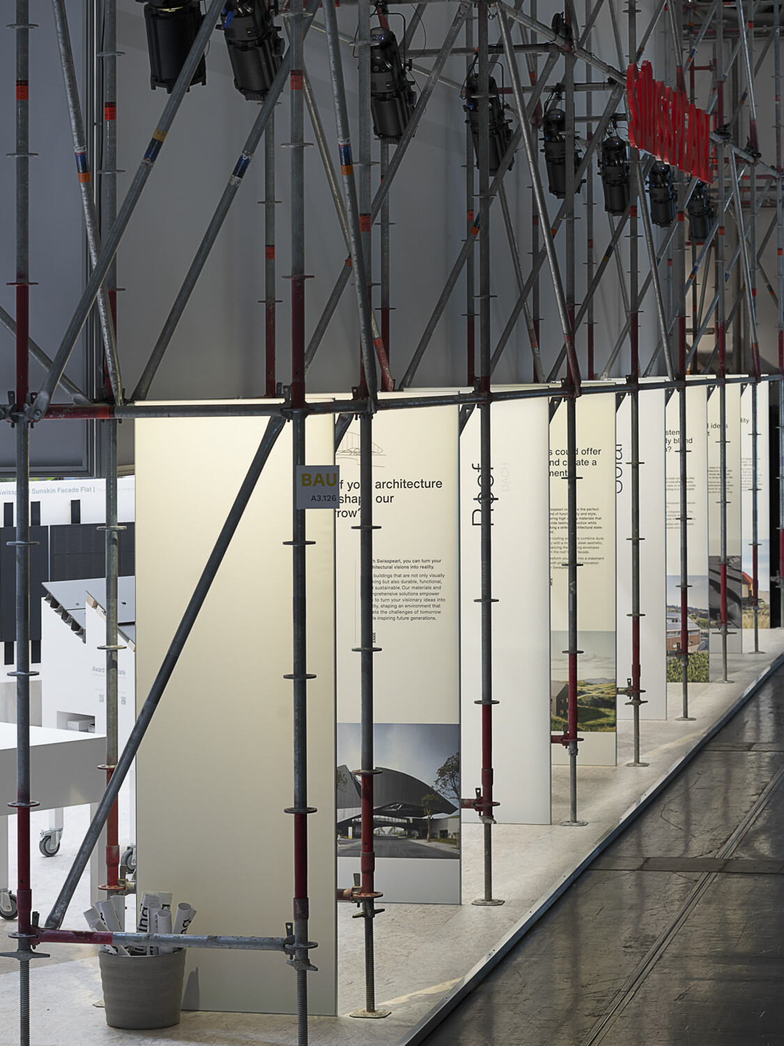 First presented at BAU 2025 in Munich, Swisspearl demonstrates that trade fair architecture can be both sustainable and visually engaging.